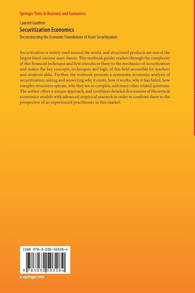 Securitization is widely used around the world, and structured products are one of the largest fixed-income asset classes. This textbook guides readers through the complexity of this financial technique and first introduces them to the mechanics of securitization and makes the key concepts, techniques and logic of this field accessible for teachers and students alike. Further, the textbook presents a systematic economic analysis of securitization, asking and answering why it exists, how it works, why it has failed, how complex structures operate, why they are so complex, and many other related questions. The author offers a unique approach, and combines detailed discussions of theoretical economics models with advanced empirical research in order to confront them to the perspective of an experienced practitioner in this market.