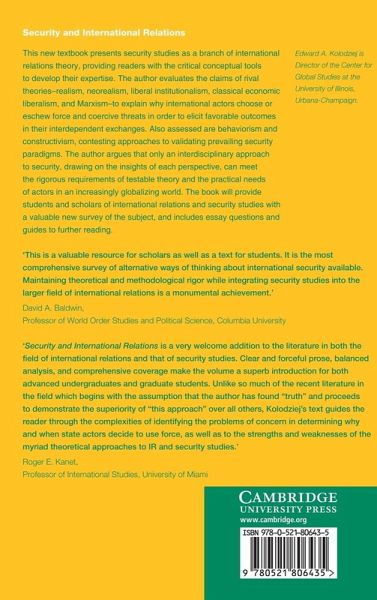 This textbook presents security studies as a branch of international relations theory, providing readers with the critical conceptual tools to develop their expertise. The author evaluates the claims of rival theories - realism, neorealism, liberal institutionalism, classical economic liberalism, and Marxism - to explain why international actors choose or eschew force and coercive threats in order to elicit favorable outcomes in their interdependent exchanges. Also discussed are behaviorism and constructivism, contesting approaches to validate prevailing security paradigms. The author argues that only an interdisciplinary approach to security, drawing on the insights of each perspective, can meet the rigorous requirements of testable theory and the practical needs of actors in an increasingly globalizing world. The book will provide students and scholars of international relations and security studies with a valuable survey of the subject, and includes essay questions and guides to further reading.