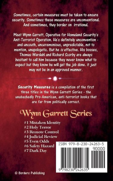 Who Is Wynn Garrett? Due to Constitutional restraints on law enforcement, the risk to Americans has reached an all-time high. Recognizing the need in a post 9-11 era, for an aggressive response, the Department of Homeland Security assigns Wynn Garrett to "eliminate" the threat, by "any means necessary." Mistakenly believing Wynn to be a former Navy Seal, by the same name, they expect him to be politically correct and follow reasonable guidelines of war. He turns out to be anything but reasonable. A proud American, Wynn has no use for the terrorists. He delivers on the promise to "eliminate" the names on the list given him by Thomas Wardahl and Richard Scorby, his bosses. Wynn's impetuous nature is candidly revealed through his impatience and intolerance, but offset by a uniquely cynical humor. Determined that America emerges victorious, Wynn employs questionable tactics in his personal war on terrorism, much to the consternation of his superiors in Washington. They constantly attempt to curb his reckless behavior, but to no avail. Cruelly honest and unabashedly patriotic, slightly offensive but extremely effective, he is America's answer to the problem of domestic terrorism. Making no apologies and holding nothing back; he meets the danger head on, fighting fire with fire. Wynn C. Garrett is America's Mercenary of Freedom. Books 1-3 of the Wynn Garrett Series.