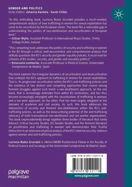This book explores the triangular dynamics of securitisation and desecuritisation that underpin the EU's approach to trafficking in women for sexual exploitation. That is, the progressive securitisation of trafficking in women for sexual exploitation within the EU's anti-trafficking policies and the existence of two distinct and competing approaches that coexist among feminist struggles against such trend and that largely follow the two opposing views that structure feminist debates on prostitution: a neo-abolitionist approach, on the one hand, that is increasingly defended from within EU institutions, and has therefore become increasingly entangled with the securitisation of trafficking in women; and a sex work approach, on the other hand, that has been largely relegated to the domains of academia and civil society. As such, this book addresses the intersection of security and feminist neo-abolitionism within the EU's anti-trafficking policies, as well as the de-securitising potentialof the anti-trafficking advocacy of both neo-abolitionist and sex worker organisations operating at EU level. This book is unique in that it unprecedentedly brings together three bodies of literature that rarely interact: Critical Security Studies, EU Gender Studies and the feminist literature on prostitution and trafficking in women and demonstrates their fruitful interaction in an extensive empirical analysis of the EU's internal security, violence against women and anti-trafficking policies.