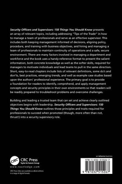 Security Officers and Supervisors: 150 Things You Should Know presents an array of relevant topics, including addressing â Tips of the Tradeâ in how to manage a team of professionals and serve as an effective supervisor.