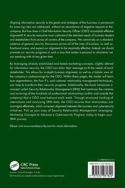 Aligning security with business goals is vital for managing risks without harm. This book shows CISOs how to use marketing conceptsâ like segmentation and SRMâ to customise messaging, build relationships, and enhance business alignment. Discover strategies to optimise cybersecurity.