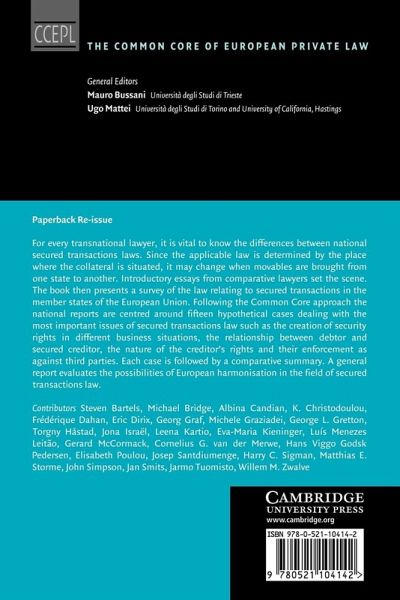 For every transnational lawyer, it is vital to know the differences between national secured transactions laws. Since the applicable law is determined by the place where the collateral is situated, it may change when movables are brought from one state to another. Introductory essays from comparative lawyers set the scene. The book then presents a survey of the law relating to secured transactions in the member states of the European Union. Following the Common Core approach, the national reports are centred around fifteen hypothetical cases dealing with the most important issues of secured transactions law, such as the creation of security rights in different business situations, the relationship between debtor and secured creditor, the nature of the creditor's rights and their enforcement as against third parties. each case is followed by a comparative summary. A general report evaluates the possibilities of European harmonisation in the field of secured transactions law.