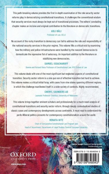 * Introduction: Leverage, Sequencing, Design, and Separation-Considerations in Security Sector Reform During Constitutional Transition * PART I MILITARY DICTATORSHIPS * 1: Narcís Serra: Security Sector Reform in Post-Franco Spain * 2: Gonzalo García Pino: The Slow Change in Chile: Long-Term Security Sector Reform Alongside Constitutional Transition * 3: Sandra Elena and Julia Pomares: Argentina's Security Sector Reform: Democratization Before Constitutional Transition * 4: Agus Widjojo and Andrew Ellis: Stage-Managing Security Sector Reform in Indonesia * PART II POLICE STATES * 5: Richard Stacey: Police Impunity in Kenya * 6: Ernest Lartey and Kwesi Aning: Constitutional Reform and Security Sector Reform in Ghana * 7: Richard Stacey and Christina Murray: Security Sector Reform and Democratic Transition in Parallel: The South African Case * PART III POST-AUTHORITARIAN REFORM: RUPTURES, CONFLICT, AND MANAGED TRANSITIONS * 8: Zaid al-Ali: Constitutional Reform Processes and Security Sector Reform: Principles for Practice-Iraq Case Study * 9: Philippe Droz-Vincent: The Arab Spring Region in a Constitutional Era: A Few Instances of Short-Lived Security Sector Reform * Conclusion: Security Sector Reform and constitutional Transitions-Challenging the Consensus