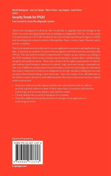 In Security Trends for FPGA's the authors present an analysis of current threats against embedded systems and especially FPGAs. They discuss about requirements according to the FIPS standard in order to build a secure system. This point is of paramount importance as it guarantees the level of security of a system.