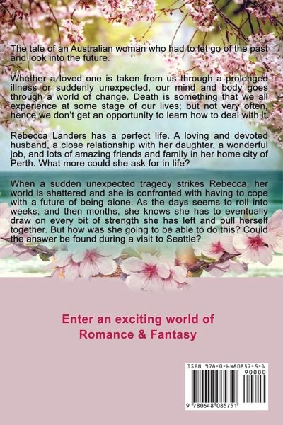 The tale of an Australian woman who had to let go of the past and look into the future. Whether a loved one is taken from us through a prolonged illness or suddenly unexpected, our mind and body goes through a world of change. Death is something that we all experience at some stage of our lives; but not very often, hence we don't get an opportunity to learn how to deal with it. Rebecca Landers has a perfect life. A loving and devoted husband, a close relationship with her daughter, a wonderful job, and lots of amazing friends and family in her home city of Perth. What more could she ask for in life? When a sudden unexpected tragedy strikes Rebecca, her world is shattered and she is confronted with having to cope with a future of being alone. As the days seems to roll into weeks, and then months, she knows she has to eventually draw on every bit of strength she has left and pull herself together. But how was she going to be able to do this? Could the answer be found during a visit to Seattle?