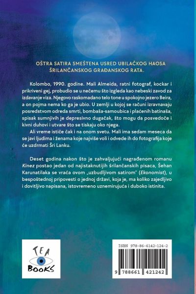 Otra satira smetena usred ubiläkog haosa rilan¿anskog gräanskog rata. Kolombo, 1990. godine. Mali Almeida, ratni fotograf, kockar i prikriveni gej, probudio se u ne¿emu to izgleda kao nebeski zavod za izdavanje viza. Njegovo raskomadano telo tone u spokojno jezero Beira, a on pojma nema ko ga je ubio. U zemlji u kojoj se räuni izravnavaju posredstvom odreda smrti, bombaa-samoubica i pläenih batinaa, spisak sumnjivih je depresivno dugäak, to mogu da posvedöe i kivni duhovi i utvare to se tiskaju oko njega. Ali vreme isti¿e ¿ak i na onom svetu. Mali ima sedam meseca da se javi ljudima i enama koje najvie voli i odvede ih do fotografija koje ¿e uzdrmati ri Lanku. Deset godina nakon to je zahvaljujüi nagräenom romanu Kinez postao jedan od najistaknutijih rilan¿anskih pisaca, ehan Karunatilaka se vräa ovom "uzbudljivom satirom" (Ekonomist), u bespotednoj pripovesti o jednoj dravi, koja je, ma koliko zajedljivo i dovitljivo napisana, istovremeno uznemirujüa i duboko istinita.