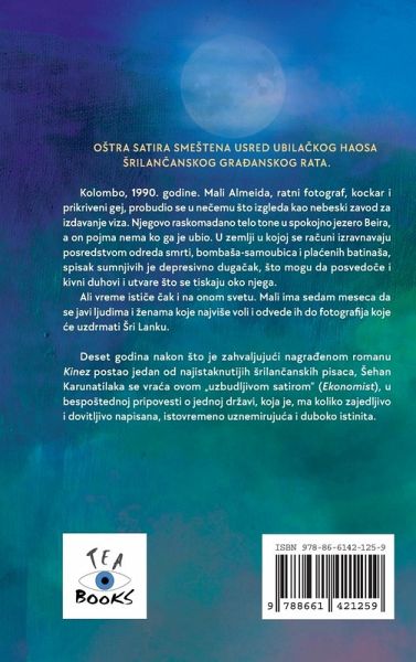 Otra satira smetena usred ubiläkog haosa rilan¿anskog gräanskog rata. Kolombo, 1990. godine. Mali Almeida, ratni fotograf, kockar i prikriveni gej, probudio se u ne¿emu to izgleda kao nebeski zavod za izdavanje viza. Njegovo raskomadano telo tone u spokojno jezero Beira, a on pojma nema ko ga je ubio. U zemlji u kojoj se räuni izravnavaju posredstvom odreda smrti, bombaa-samoubica i pläenih batinaa, spisak sumnjivih je depresivno dugäak, to mogu da posvedöe i kivni duhovi i utvare to se tiskaju oko njega. Ali vreme isti¿e ¿ak i na onom svetu. Mali ima sedam meseca da se javi ljudima i enama koje najvie voli i odvede ih do fotografija koje ¿e uzdrmati ri Lanku. Deset godina nakon to je zahvaljujüi nagräenom romanu Kinez postao jedan od najistaknutijih rilan¿anskih pisaca, ehan Karunatilaka se vräa ovom "uzbudljivom satirom" (Ekonomist), u bespotednoj pripovesti o jednoj dravi, koja je, ma koliko zajedljivo i dovitljivo napisana, istovremeno uznemirujüa i duboko istinita.