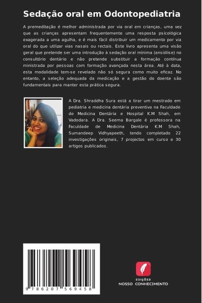 A premeditação é melhor administrada por via oral em crianças, uma vez que as crianças apresentam frequentemente uma resposta psicológica exagerada a uma agulha, e é mais fácil distribuir um medicamento por via oral do que utilizar vias nasais ou rectais. Este livro apresenta uma visão geral que pretende ser uma introdução à sedação oral mínima (ansiólise) no consultório dentário e não pretende substituir a formação contínua ministrada por pessoas com formação avançada nesta área. Até à data, esta modalidade tem-se revelado não só segura como muito eficaz. No entanto, a seleção adequada da medicação e a gestão do doente são fundamentais para manter esta prática segura.