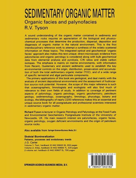 ...'Encyclopedic'...As the author states in the preface, this work aims to fulfil the need for a synthesis of our current state of knowledge regarding 'the origin, early diagenesis, character, distribution and bulk geochemical composition of sedimentary organic matter' The aim has been acheived admirably...a timely addition for all those involved in the fields of palynological, sedimentological and environmental analyses and hydrocarbon exploration, and should successfully appeal to a wider audience of geological and environmental scientists, especially incoming research students. Sedimentary Organic Matter is surely destined to become a standard reference text for many years to come - Geoscientistn; ...certainly worth purchasing... - Geological Magazine