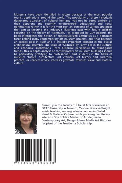 Museums have been identified in recent decades as the most popular tourist destinations around the world. The popularity of these historically designated guardians of cultural heritage may not be based entirely on their apparent and recently re-discovered educational and social significance; rather, it is for the most part an outcome of various strategies that aim at securing the industry s illustrious past with future stability. Focusing on the theory of spectacle, as proposed by Guy Debord, the book interogates the notion of spectacularized aesthetics as a dominant force behind many contemporary art museum projects, one that becomes an explicit goal in itself and a critically important element in the overall architectural assembly. The value of "Seduced by Form" lies in the cultural and economic implications. From historical perspective to avant-garde trends, this in-depth analysis of contemporary art museum buildings should be particularly gratifying to professionals and students in the fields of museum studies, architecture, art criticism, art history and curatorial practice, or readers whose interests gravitate towards visual and material culture.