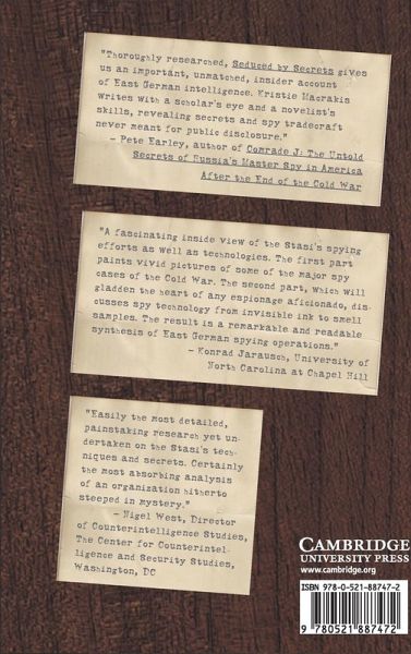 Seduced by Secrets reveals the secret technical sources and methods of the Stasi (East German Ministry for State Security). Based on prodigious research in the Stasi archives, Seduced by Secrets enters the Stasiâ??s secret world of technology through biographies of agents, defectors, and officers.