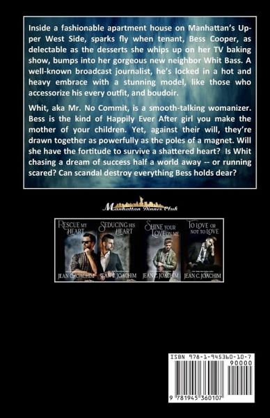 Inside a fashionable apartment house on Manhattan's Upper West Side, sparks fly when tenant, Bess Cooper, as delectable as the desserts she whips up on her TV baking show, bumps into her gorgeous new neighbor Whit Bass. A well-known broadcast journalist, he's locked in a hot and heavy embrace with a stunning model, like those who accessorize his every outfit, and boudoir. Whit, aka Mr. No Commit, is a smooth-talking womanizer. Bess is the kind of Happily Ever After girl you make the mother of your children. Yet, against their will, they're drawn together as powerfully as the poles of a magnet. Will she have the fortitude to survive a shattered heart? Is Whit chasing a dream of success half a world away -- or running scared? Can scandal destroy everything Bess holds dear?