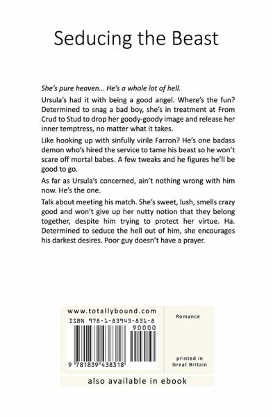 She's pure heaven… He's a whole lot of hell. Ursula's had it with being a good angel. Where's the fun? Determined to snag a bad boy, she's in treatment at From Crud to Stud to drop her goody-goody image and release her inner temptress, no matter what it takes. Like hooking up with sinfully virile Farron? He's one badass demon who's hired the service to tame his beast so he won't scare off mortal babes. A few tweaks and he figures he'll be good to go. As far as Ursula's concerned, ain't nothing wrong with him now. He's the one. Talk about meeting his match. She's sweet, lush, smells crazy good and won't give up her nutty notion that they belong together, despite him trying to protect her virtue. Ha. Determined to seduce the hell out of him, she encourages his darkest desires. Poor guy doesn't have a prayer.