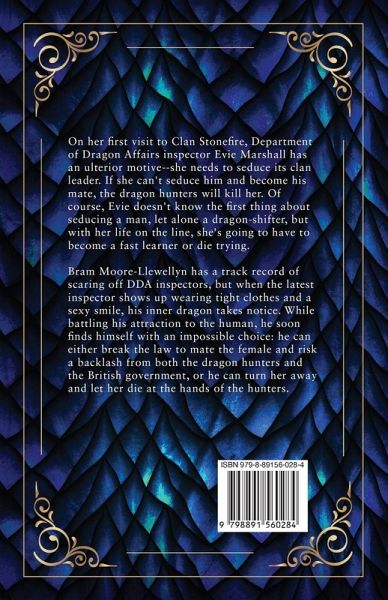 On her first visit to Clan Stonefire, Department of Dragon Affairs inspector Evie Marshall has an ulterior motive--she needs to seduce its clan leader. If she can't seduce him and become his mate, the dragon hunters will kill her. Of course, Evie doesn't know the first thing about seducing a man, let alone a dragon-shifter, but with her life on the line, she's going to have to become a fast learner or die trying. Bram Moore-Llewellyn has a track record of scaring off DDA inspectors, but when the latest inspector shows up wearing tight clothes and a sexy smile, his inner dragon takes notice. While battling his attraction to the human, he soon finds himself with an impossible choice: he can either break the law to mate the female and risk a backlash from both the dragon hunters and the British government, or he can turn her away and let her die at the hands of the hunters.