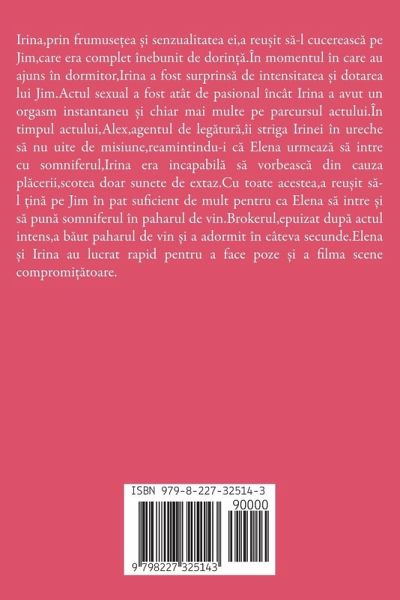 Irina,prin frumuse¿ea ¿i senzualitatea ei,a reüit s¿-l cucereasc¿ pe Jim,care era complet înebunit de dorin¿¿.În momentul în care au ajuns în dormitor,Irina a fost surprins¿ de intensitatea ¿i dotarea lui Jim.Actul sexual a fost atât de pasional încât Irina a avut un orgasm instantaneu ¿i chiar mai multe pe parcursul actului.În timpul actului,Alex,agentul de leg¿tur¿,îi striga Irinei în ureche s¿ nu uite de misiune,reamintindu-i c¿ Elena urmeaz¿ s¿ intre cu somniferul,Irina era incapabil¿ s¿ vorbeasc¿ din cauza pl¿cerii,scotea doar sunete de extaz.Cu toate acestea,a reüit s¿-l ¿in¿ pe Jim în pat suficient de mult pentru ca Elena s¿ intre ¿i s¿ pun¿ somniferul în paharul de vin.Brokerul,epuizat dup¿ actul intens,a b¿ut paharul de vin ¿i a adormit în câteva secunde.Elena ¿i Irina au lucrat rapid pentru a face poze ¿i a filma scene compromi¿¿toare.
