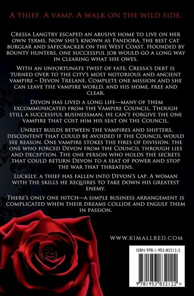 Cressa Langtry, the best cat burglar on the west coast, owes a large debt to the wrong kind of people. Her only way clear is to steal something for the city's notorious and ancient vampire - Devon Trelane. Devon can't forgive the one man who cost him a seat on the Council. Luckily, a thief has fallen in his lap. A woman with the skills he requires to take down his greatest enemy. There's only one hitch-a simple business arrangement becomes complicated when their dreams collide and engulf them in passion.