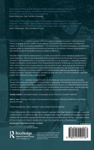 Broad in scope, this book will garner interest from social scientists and humanists alike, who are interested in contemporary debates about place studies, mobility, and the located realities of globalization.Cartier and Lew's interesting and informative book explores contemporary issues in travel and tourism and human geography, and the complex cultural, political, and economic activities at stake in touristed landscapes as a result of globalization.