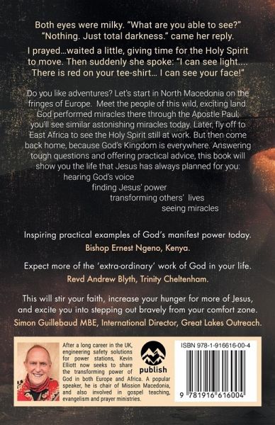 Do you like exploring? Going on an adventure, where you're not sure what's round the next corner. Where what you experience stands out sharp and new, so you're learning all the time. And what you learn might change the rest of your life.Are you up for it? If so, come and walk through these pages. Our journey starts in a European country like no other, but it's really a journey into the Kingdom of God, the seen and unseen world that overlaps every country on Earth, where God does miracles every day, where he definitely wants you to get involved. In fact, it's where he invites you to live. So.... first stop: North Macedonia, a country right on the fringes of Europe. Meet the people of this wild, exciting land and begin to share my passion. Maybe God will call you to pray for it. One day you may even go and support his church there. If so, you'll be following the Apostle Paul, whose vision of the "man of Macedonia" took him there nearly 2000 years ago. Just as the Holy Spirit performed miracles through Paul in Philippi and elsewhere, you'll see astonishing miracles in North Macedonia today. Later on, we will fly off to East Africa to see some miracles there, but we will also be spending time at home; God's Kingdom is everywhere. We just need to learn to see it. The miracles God is doing in Macedonia and Africa, he's doing in your country too. His invitation is here and now. He has much more to give you than you maybe realise: closeness to him, gifts and challenges too. This is an inspiring book of miracles that happen today, including healings, deliverance and creation miracles. It tells personal stories of miracles through answered prayers, but also tackles the hard questions such as when prayers are not answered. Gives practical advice on what is in one's spiritual toolbox to help each believer in Jesus to do the things that he did, and told us to do. Helps each believer move from where they currently are, into living more supernaturally.