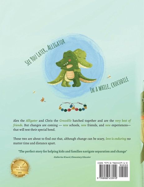 A heart-warming story about friendship, separation, resilience, and enduring love. The perfect story for helping kids and families navigate separation and change. Chris the Crocodile and Alex the Alligator hatched together and are the best of friends. But soon they learn they will have to navigate changes that all children face in one form or another. It is a story that reminds us that love is enduring despite time and distance apart. A wonderful resource for parents, teachers and counselors to help guide children dealing with separation anxiety or preparing for change: First day of school or nursery When a parent needs to travel or go back to work. Newly separated or divorced families learning how to live in apart Long trips or vacations Moving Dealing with any major change or big transition The situations, bond and solutions Chris and Alex's friendship impart can easily be transferred to the parent / child relationship or any other caring relationship where separation can be difficult. The book comes with a helpful list of tips and strategies for parents, teachers and caregivers. Workable ideas, activities and talking points that tie back to the story to help children manage and cope with anxiety, worry, and fear and to be more resilient and confident. "See You Later Croc-A-Gator" encourages children to embrace life's milestones and challenges, especially when it comes to separation from the familiar. A perfect gift for any family working through change.
