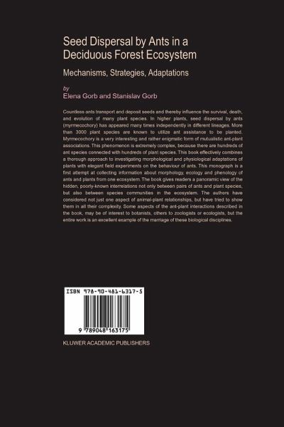 Countless ants transport and deposit seeds and thereby influence the survival, death, and evolution of many plant species. In higher plants, seed dispersal by ants (myrmecochory) has appeared many times independently in different lineages. More than 3000 plant species are known to utilize ant assistance to be planted. Myrmecochory is a very interesting and rather enigmatic form of mutualistic ant-plant associations. This phenomenon is extremely complex, because there are hundreds of ant species connected with hundreds of plant species. This book effectively combines a thorough approach to investigating morphological and physiological adaptations of plants with elegant field experiments on the behaviour of ants. This monograph is a first attempt at collecting information about morphology, ecology and phenology of ants and plants from one ecosystem. The book gives readers a panoramic view of the hidden, poorly-known interrelations not only between pairs of ants and plant species, but also between species communities in the ecosystem. The authors have considered not just one aspect of animal-plant relationships, but have tried to show them in all their complexity. Some aspects of the ant-plant interactions described in the book may be of interest to botanists, others to zoologists or ecologists, but the entire work is an excellent example of the marriage of these biological disciplines.