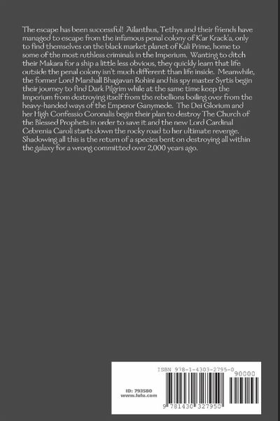 The escape was successful! Ailanthus, Tethys and their friends have escaped from the penal colony and the first place they find themselves is the black market planet of Kali Prime, home to some of the worst criminals and cheats not locked up. Wanting to ditch their stolen transport for something a little less obvious, they quickly learn that life outside K'ar Krack'a isn't all that different than it was inside. Meanwhile, Rohini and his spy master begin their attempts to hold the Imperium together from the rebellion boiling over at the heavy-handed methods of the new emperor. The Dei Glorium and her High Confessio of The Church of the Blessed Prophets begin their effort to destroy that which they want to save and Lord Cardinal Cebrenia Caroli begins her bumpy road toward revenge.