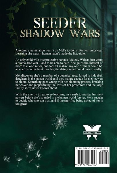 Dating and High School: Hard Enough. Now Add Assassins. Avoiding assassination wasn't on Mel's to-do list for her junior year. Learning she wasn't human hadn't made the list, either. An only child with overprotective parents, Melody Walters just wants a drama-free year-and to be able to date. She gains the interest of more than one suitor, but doesn't realize any one of them could be an enemy on the hunt. For her, the dating scene could prove deadly. Mel discovers she's a member of a botanical race, forced to hide their daughters in the human world until they mature enough for their powers to bloom. Something goes wrong with her blooming process, breaking her cover and jeopardizing the lives of her protectors and the large family she'd never known about. With the enemy threat ever-looming, in a rush to master her new powers before she's stranded in the human world forever, Mel struggles to decide who she can trust and if the sacrifice being asked of her is too great. PRAISE FOR SEEDER SHADOW WARS "Seeder Shadow Wars presents the genuinely strong female protagonists that are missing in a lot of young adult fantasy today. This book has all the elements of great storytelling--relatable and complex characters, a great and accessible magic system, and deep themes." -CM Adler, author of The Witches of Grimm Series