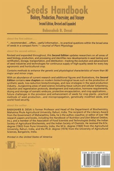 Revised throughout, this expanded edition of the critically acclaimed and bestselling Seeds Handbook offers expanded insight into all areas of seed development. The author, one of the most respected scientists in the field, tracks the evolution of the seed industry, covering the development of high-quality seeds. He identifies current developments in seed testing and certification, storage, transportation, and distribution. Adding current research, as well as figures, and illustrations, this edition covers emerging biotechnology including the production of synthetic seeds and new methods to enhance the genetic and physiological characteristics of more than 80 major and minor crops.