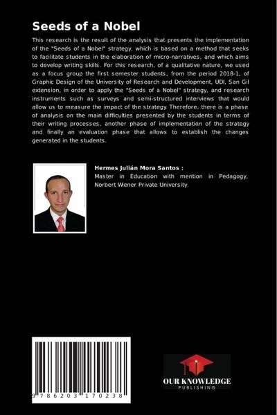 This research is the result of the analysis that presents the implementation of the "Seeds of a Nobel" strategy, which is based on a method that seeks to facilitate students in the elaboration of micro-narratives, and which aims to develop writing skills. For this research, of a qualitative nature, we used as a focus group the first semester students, from the period 2018-1, of Graphic Design of the University of Research and Development, UDI, San Gil extension, in order to apply the "Seeds of a Nobel" strategy, and research instruments such as surveys and semi-structured interviews that would allow us to measure the impact of the strategy. Therefore, there is a phase of analysis on the main difficulties presented by the students in terms of their writing processes, another phase of implementation of the strategy and finally an evaluation phase that allows to establish the changes generated in the students.