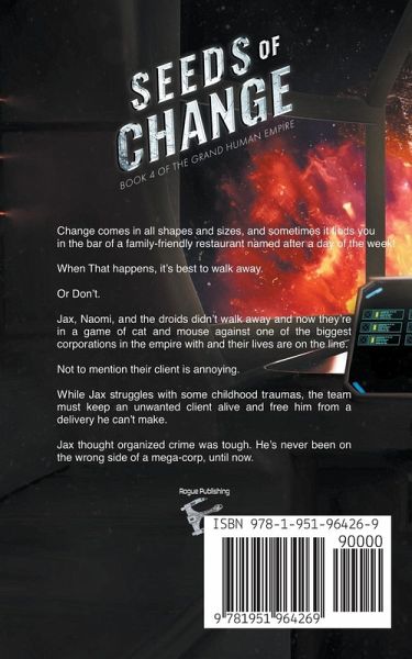 Change comes in all shapes and sizes, and sometimes it finds you in the bar of a family-friendly restaurant named after a day of the week! When That happens, it's best to walk away. Or Don't. Jax, Naomi, and the droids didn't walk away and now they're in a game of cat and mouse against one of the biggest corporations in the empire with and their lives are on the line. Not to mention their client is annoying. While Jax struggles with some childhood traumas, the team must keep an unwanted client alive and free him from a delivery he can't make. Jax thought organized crime was tough. He's never been on the wrong side of a mega-corp, until now.
