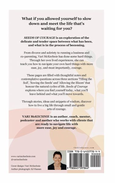 What if you allowed yourself to slow down and meet the life that's waiting for you?Seeds of Courage is an exploration of the delicate and tender space between what has been, and what is in the process of becoming. From divorce and sobriety to running a business and co-parenting, Vari McKechnie has done some hard things. Through her own lived experiences, she can teach you how to navigate your own hard things with more ease, joy, and most importantly, courage. These pages are filled with thoughtful notes and contemplative questions across three sections 'Tilling the Soil', 'Sowing the Seeds' and 'Allowing the Bloom' that honour the natural cycles of life. Seeds of Courage explores where you find yourself today, what you'll leave behind and what you'll move towards. Through stories, ideas and snippets of wisdom, discover how to live a big life through small and gentle acts of courage.