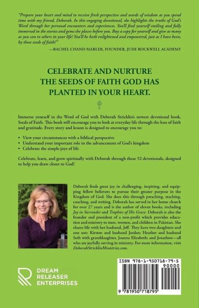 CELEBRATE AND NURTURE THE SEEDS OF FAITH GOD HAS PLANTED IN YOUR HEART. Immerse yourself in the Word of God with Deborah Stricklin's newest devotional book, Seeds of Faith. This book will encourage you to look at everyday life through the lens of faith and gratitude. Every story and lesson is designed to encourage you to: ¿ View your circumstances with a biblical perspective ¿ Understand your important role in the advancement of God's kingdom ¿ Celebrate the simple joys of life Celebrate, learn, and grow spiritually with Deborah through these 52 devotionals, designed to help you draw closer to God!