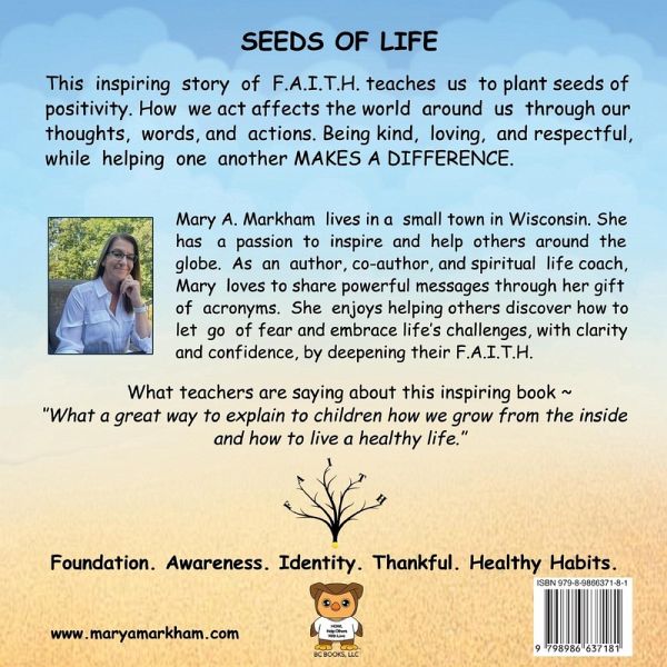 This inspiring story of F.A.I.T.H. teaches us to plant seeds of positivity. How we act affects the world around us through our thoughts, words, and actions. Being kind, loving, and respectful, while helping one another MAKES A DIFFERENCE. What teachers say about this inspiring book: "What a great way to explain to children how we grow from the inside and how to live a healthy life."