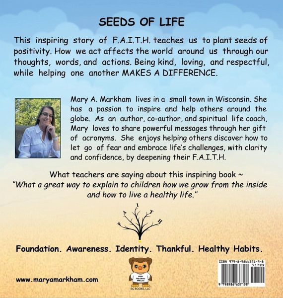 This inspiring story of F.A.I.T.H. teaches us to plant seeds of positivity. How we act affects the world around us through our thoughts, words, and actions. Being kind, loving, and respectful, while helping one another, MAKES A DIFFERENCE. What teachers say about this inspiring book: "What a great way to explain to children how we grow from the inside and how to live a healthy life."