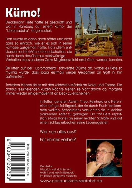 Decksmann Fiete hatte es geschafft und war in Hamburg auf einem Kümo, der "Libromadeira", angemustert.Dort wurde es dann doch härter und nicht ganz so einfach, wie er es sich in seiner Fantasie ausgemalt hatte. Trotz allem entstanden echte Männerfreundschaften, die auch durch das überaus merkwürdige Verhalten eines anderen Crewmitgliedes nicht erschüttert werden konnten.Sie ritten auf der "Libromadeira" schwerste Stürme ab, wobei es Fiete so mulmig wurde, dass sogar erstmals wieder Gedanken an Gott in ihm aufkeimten.Trotzdem trieben sie es mit den wildesten Mädels an Nord- und Ostsee. Die daraus resultierenden kurzen Nächte hielten sie nicht davon ab, morgens immer wieder einigermaßen fit an Deck zu erscheinen.In Belfast gerieten Achim, Theo, Reinhard und Fiete in eine heftige Schlägerei, der sie durch Flucht entkommen wollten. Schnellstens versuchten sie in Achims parkenden Käfer zu gelangen. Da traf Fiete urplötzlich etwas Hartes an seiner rechten Schläfe und auf einen Schlag erloschen seine Lebensgeister.War nun alles aus?Für immer vorbei?