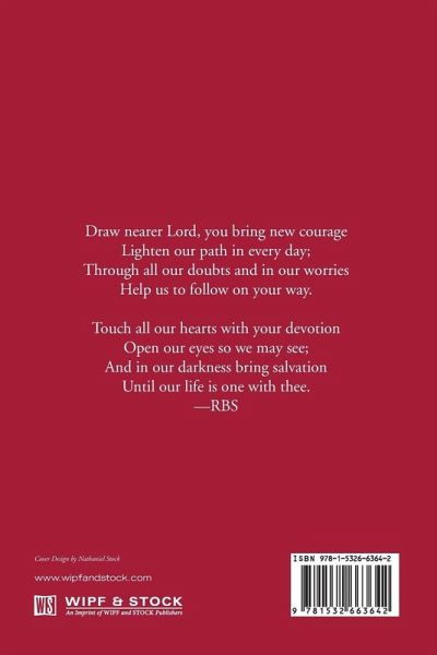Draw nearer Lord, you bring new courage Lighten our path in every day; Through all our doubts and in our worries Help us to follow on your way. Touch all our hearts with your devotion Open our eyes so we may see; And in our darkness bring salvation Until our life is one with thee. --RBS