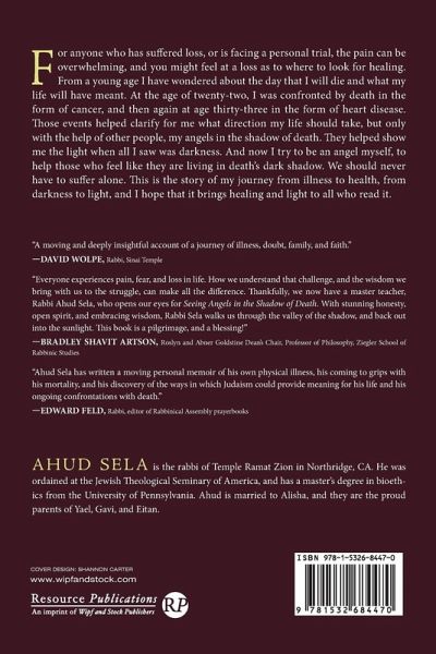 For anyone who has suffered loss, or is facing a personal trial, the pain can be overwhelming, and you might feel at a loss as to where to look for healing. From a young age I have wondered about the day that I will die and what my life will have meant. At the age of twenty-two, I was confronted by death in the form of cancer, and then again at age thirty-three in the form of heart disease. Those events helped clarify for me what direction my life should take, but only with the help of other people, my angels in the shadow of death. They helped show me the light when all I saw was darkness. And now I try to be an angel myself, to help those who feel like they are living in death's dark shadow. We should never have to suffer alone. This is the story of my journey from illness to health, from darkness to light, and I hope that it brings healing and light to all who read it.