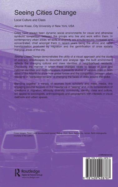 Seeing Cities Change demonstrates the utility of a visual approach and the study of ordinary streetscapes to document and analyze how the built environment reflects the changing cultural and class identities of neighborhood residents. Discussing the manner in which these changes relate to issues of local and national identities and multiculturalism, it presents studies of various cities on both sides of The Atlantic to show how global forces and the competition between urban residents in 'contested terrains' is changing the faces of cities across the globe.