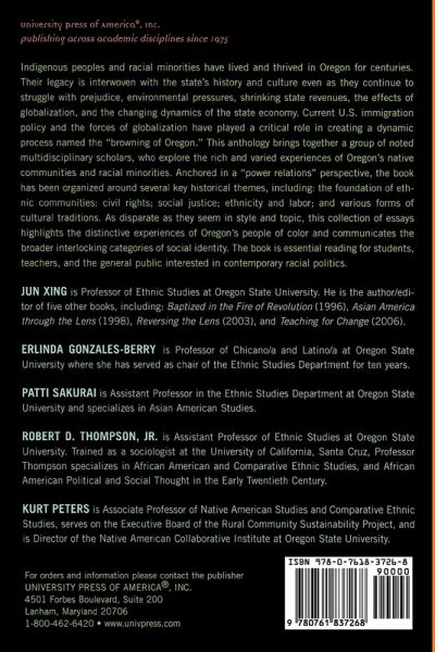 Indigenous peoples and racial minorities have lived and thrived in Oregon for centuries. Their legacy is interwoven with the state's history and culture even as they continue to struggle with prejudice, environmental pressures, shrinking state revenues, the effects of globalization, and the changing dynamics of the state economy. Current U.S. immigration policy and the forces of globalization have played a critical role in creating a dynamic process named the 'browning of Oregon.' This anthology brings together a group of noted multidisciplinary scholars, who explore the rich and varied experiences of Oregon's native communities and racial minorities. Anchored in a 'power relations' perspective, the book has been organized around several key historical themes, including: the foundation of ethnic communities; civil rights; social justice; ethnicity and labor; and various forms of cultural traditions. As disparate as they seem in style and topic, this collection of essays highlight the distinctive experiences of Oregon's people of color and communicates the broader interlocking categories of social identity. The book is essential reading for students, teachers, and the general public interested in contemporary racial politics.