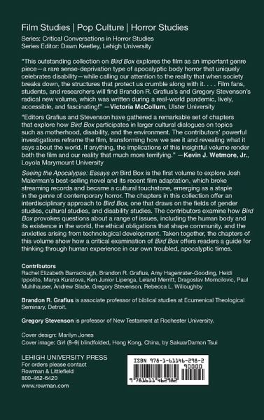 Seeing the Apocalypse: Essays on Bird Box is the first volume to explore Josh Malerman’s best-selling novel and its recent film adaptation. The essays in this collection offer an interdisciplinary approach to Bird Box, one that draws on the fields of gender studies, cultural studies, and disability studies.