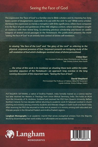 The expression the "face of God" is a familiar one to Bible scholars and its meaning has long been a point of disagreement, especially in its use with the verb "to see". While some scholars dismissed the expression as merely a metaphor with little significance, others have compared it to the 'face' of gods and goddesses of the ANE religious context, where worshippers sought an audience with their 'divine' king. Scrutinising previous scholarship and based on careful exegesis of several crucial passages in the Penteteuch, this publication presents the motif "seeing the face of God" in an entirely new context of divine self-revelation.