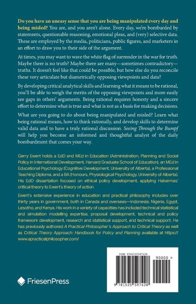 Do you have an uneasy sense that you are being manipulated every day and being misled? You are, and you aren't alone. Every day, we're bombarded by statements, questionable reasoning, emotional pleas, and (very) selective data. These are employed by the media, politicians, public figures, and marketers in an effort to draw you to their side of the argument. At times, you may want to wave the white flag of surrender in the war for truth. Maybe there is no truth? Maybe there are many-sometimes contradictory-truths. It doesn't feel like that could be possible, but how else do you reconcile these very articulate but diametrically opposing viewpoints and data? By developing critical analytical skills and learning what it means to be rational, you'll be able to weigh the merits of the opposing viewpoints and more easily see gaps in others' arguments. Being rational requires honesty and a sincere effort to determine what is true and what is not as a basis for making decisions. What are you going to do about being manipulated and misled? Learn what being rational means, how to think rationally, and develop skills to determine valid data and to have a truly rational discussion. Seeing Through the Bumpf will help you become an informed and thoughtful analyst of the daily bombardment that comes your way.