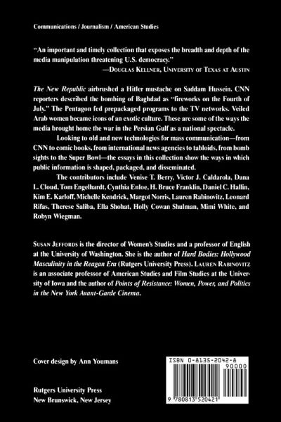 The New Republic airbrushed a Hitler mustache on Saddam Hussein. CNN reporters described the bombing of Baghdad as "fireworks on the Fourth of July." The Pentagon fed prepackaged programs to the TV networks. Veiled Arab women became icons of an exotic culture. These are some of the ways the media brought home the war in the Persian Gulf as a national spectacle.Looking to old and new technologies for mass communication--from CNN to comic books, from international new agencies to tabloids, from bomb sights to the Super Bowl--the essays in this collection show the ways in which public information is shaped, packaged, and disseminated.The contributors include Venise T. Berry, Victor J. Caldarola, Dana L. Cloud, Tom Engelhardt, Cynthia Enloe, H. Bruce Franklin, Daniel C. Hallin, Kim E. Karloff, Michelle Kendrick, Margot Norris, Lauren Rabinovitz, Leonard Rifas, Therese Saliba, Ella Shohat, Holly Cowan Shulman, Mimi White, and Robyn Wiegmen.Susan Jeffords is the director of Women's Studies and a professor of English at the University of Washington. She is the author of Hard Bodies: Hollywood Masculinity in the Reagan Era. Lauren Rabinovitz is an associate professor of American Studies and Film Studies at the University of Iowa and the author of Points of Resistance: Women, Power, and Politics in the New York Avant-Garde Cinema.