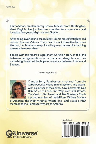 Emma Sloan, an elementary school teacher from Huntington, West Virginia, has just become a mother to a precocious and loveable five-year-old girl named Gracie. After being involved in a car accident, Emma meets firefighter and rescuer, Spenser Adams. There is an instant attraction between the two, but fate has a way of spoiling any chances of a budding romance between them. Seeing with the Heart is a poignant Christian story of the love between two generations of mothers and daughters with an underlying thread of the hope of romance between Emma and Spenser.