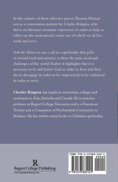 In this volume of short reflective pieces, Thomas Merton acts as a conversation partner for the author, who draws on Merton's monastic experience in order to help us reflect on the motivational center out of which we all live, work and serve. Seek the Silences is not a call to a spirituality that pulls us towards God but removes us from the pain, need and challenges of the world. Rather it highlights that it is necessary to be still before God in order to hear and then do; to disengage in order to be empowered; to be embraced in order to serve.
