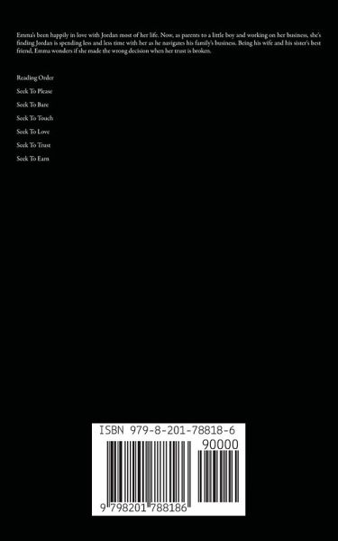 Emma's been happily in love with Jordan most of her life. Now, as parents to a little boy and working on her business, she's finding Jordan is spending less and less time with her as he navigates his family's business. Being his wife and his sister's best friend, Emma wonders if she made the wrong decision when her trust is broken. Reading Order Seek To Please Seek To Bare Seek To Touch Seek To Love Seek To Trust Seek To Earn
