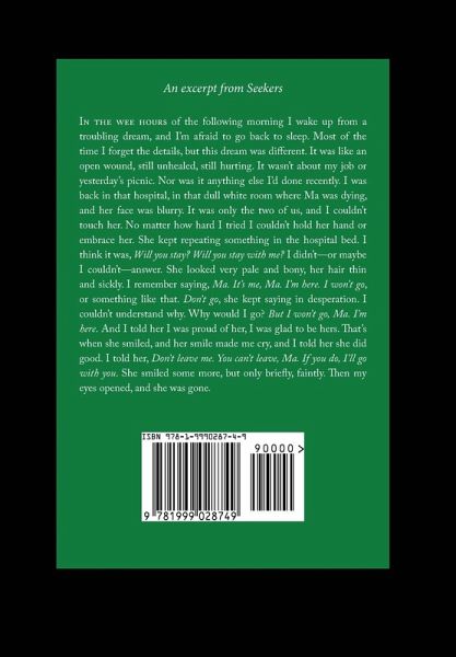 Three stories. One timeless bond. The child. An eight-year-old boy, unusually mature for his age, knows there's more to life than being bullied by neighbourhood kids. Though his home isn't the safe haven he dreams of, he finds solace in the company of Lacey, a young girl who makes him glow from the inside whenever they're together. The janitor. A man in his mid-twenties, very quiet and reserved, wants nothing more than to be seen for who he is. His work as a janitor is satisfying enough, but other parts of his life are drowning him in misery. Feeling defeated and insecure, he withdraws further into himself-until someone unexpected comes along. Someone who makes him feel alive. The beggar. A homeless man, tired and lonely, spends much of his time taking naps and lamenting his missteps. As luck would have it, his life takes an interesting turn when he meets an old friend one summer evening. The morning after, he sets off on an unprecedented journey, eager to find what he's looking for. A lyrical and deeply moving reflection on memory, friendship, and loss, Seekers is a novel that captures the struggles and innocence of childhood, the joys and conflicts of the human heart, and the enduring power of love as we know it.