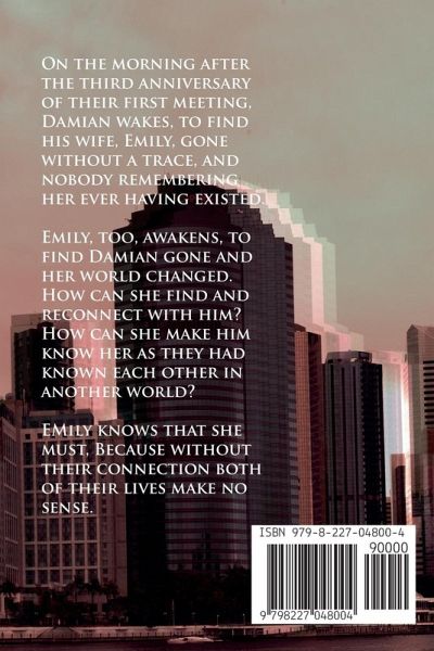 On the morning after the third anniversary of their first meeting, Damian wakes, to find his wife, Emily, gone without a trace. And things are worse than that. Nobody remembers anything about Emily ever having existed. And in his home, the one they had shared for two years, there's no trace of her ever having been there. It is as empty as it had been before she moved in with him. Had those happy years been nothing but a dream? Had he been lost in a fantasy, and only now returned to reality? But for Damian, Emily was not a dream. She was more real than anything he'd ever known. His anchor. His salvation. His missing half. With Damian finding himself disconnected from his world and seriously doubting his sanity, help comes from an unexpected quarter. Because even though nobody seems to know of her, something does remember. Driven by despair and renewed hope, Damian sets out on a quest that turns everything he thought he knew about reality on its head, and which sends him through a maelstrom of multiverse histories and time, to try and knit his and Emily's worlds back together. Emily, too, awakens to find her world changed and herself alone, with memories of different pasts colliding into a confusing chaos. But it appears that Damian still exists in that world. Can she connect with him again? Can she make him know her as they had known each other in another time and universe? Emily knows that she must. Because without their connection both of their lives make no sense. NOTE: This novel contains love scenes with explicit sexual elements.