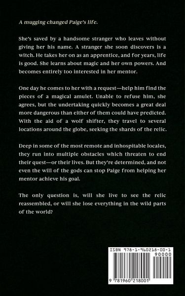 A mugging changed Paige's life. She's saved by a handsome stranger who leaves without giving her his name. A stranger she soon discovers is a witch. He takes her on as an apprentice, and for years, life is good. She learns about magic and her own powers. And becomes entirely too interested in her mentor. One day he comes to her with a request-help him find the pieces of a magical amulet. Unable to refuse him, she agrees, but the undertaking quickly becomes a great deal more dangerous than either of them could have predicted. With the aid of a wolf shifter, they travel to several locations around the globe, seeking the shards of the relic. Deep in some of the most remote and inhospitable locales, they run into multiple obstacles which threaten to end their quest-or their lives. But they're determined, and not even the will of the gods can stop Paige from helping her mentor achieve his goal. The only question is, will she live to see the relic reassembled, or will she lose everything in the wild parts of the world?
