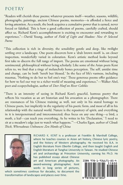 ""Readers will cherish these poems; whatever presents itself-weather, seasons, wildlife, photographs, paintings, ancient Chinese poems, memories-is afforded a fierce and loving attention. As a result, the book acquires a cumulative power that is earned, never forced or falsified. This is how a good collection of poems, carefully crafted, should affect us. Richard Kent's accomplishment is exciting to encounter and rewarding to experience."-David Young"--